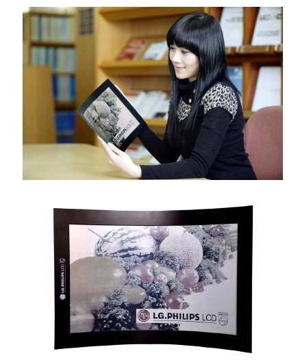 Гибкий дисплей с диагональю 10,1 дюйма от E Ink и LG Philips Компании E Ink и LG Philips LCD совместно создали прототип электронного дисплея, представляющий, на сегодняшний день наибольший в мире гибкий экран высокого разрешения. Диагональ данного образца составляет 10,1 дюйма. Данная электронная бумага создавалась на основе пленки E Ink Imaging Film. Пиксели этого дисплея представляют из себя капсулы, которые заполняются мельчайшими чёрными и белыми частицами. В зависимости от того, какой подаётся сигнал, частицы нужного цвета поднимаются к поверхности экрана, складывая изображение. Оно почти не отличается от напечатанного и может легко читаться без подсветки. При этом отметим, что электронная бумага нуждается примерно в 100 раз меньшей энергии, чем используют традиционные жидкокристаллические дисплеи.Прототип с диагональю 10,1 дюйма поддерживает разрешение