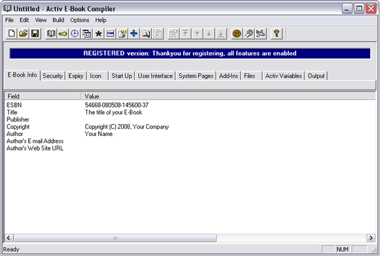 Activ E-Book Compiler v. 4.2 Программа предназначена для профессионального создания собственных электронных книг "Activ E-book". С помощью этой программы издатель получает возможность: создавать безлимитовое количество профессионально оформленных электронных книг; защищать электронные книги от копирования, несанкционированного доступа, ставить пароли, создавать демо - зоны для книг с запароливанием основных информационных разделов... и многое другое; создавать или использовать готовые «иконки» для входа в электронную книгу; программировать интерфейс (издатель сам решает оставлять или убирать из книги скроллинги, менюшки и т.п.); легко компрессировать размер электронной книги (оптимизировать размер и сделать книгу «лёгкой», даже если она содержит тонны информации).Стоимость программы $49.95. Для получения более подробной информации, бесплатного тридцатидневного тестирования программы и покупки пройдите на родной сайт этой программы, права на которую принадлежат фирме "Answers 2000 Limited".