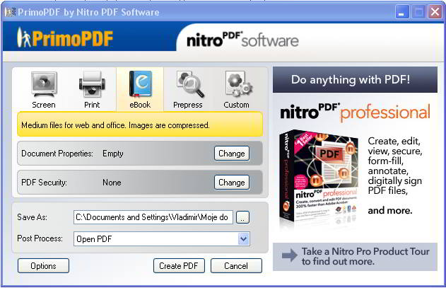 Для скачивания 32-ух, или 64-битной версии, а также покупки профессиональной версии nitroPDF Professional приглашаем пройти на сайт фирмы "PrimoPDF".