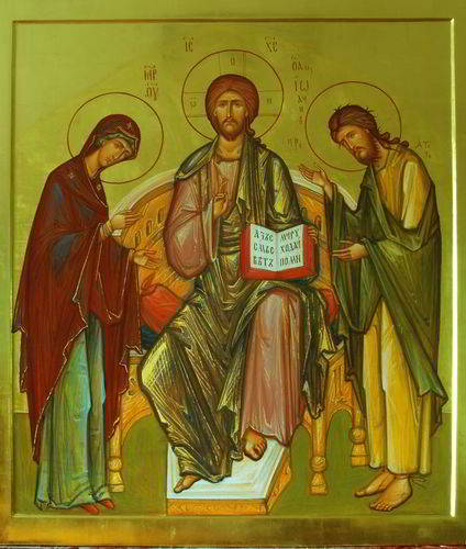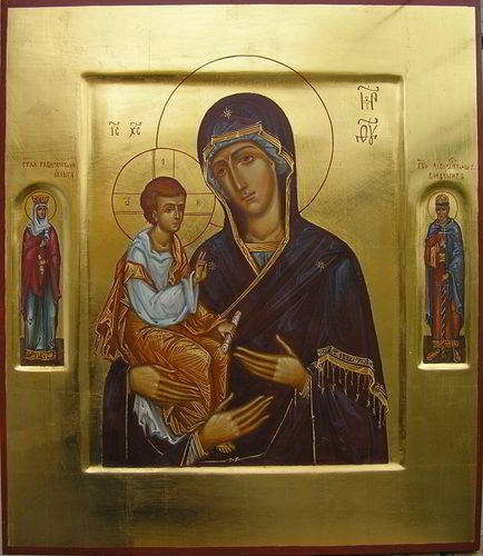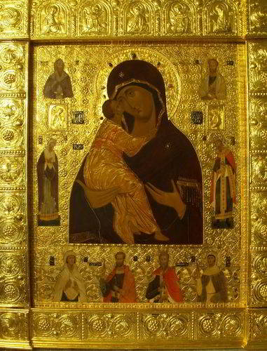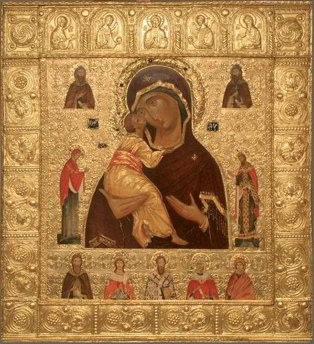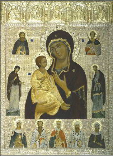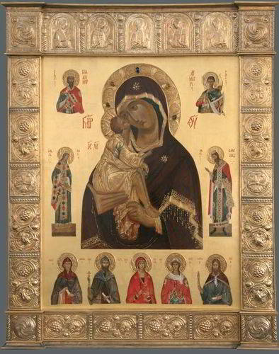 Cемейная икона - наиболее почитаемая святыня малой Церкви (семьи). Этот обычно Богородичный образ в окружении святых покровителей членов семьи часто украшается искусно отчеканенной ризой с самоцветами или драгоценными камнями.